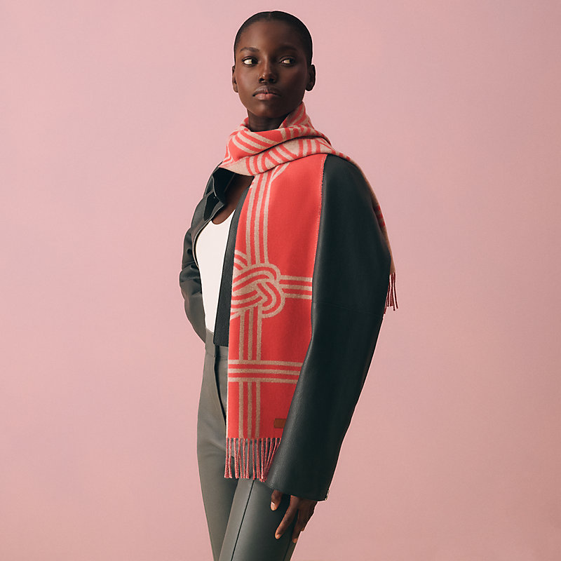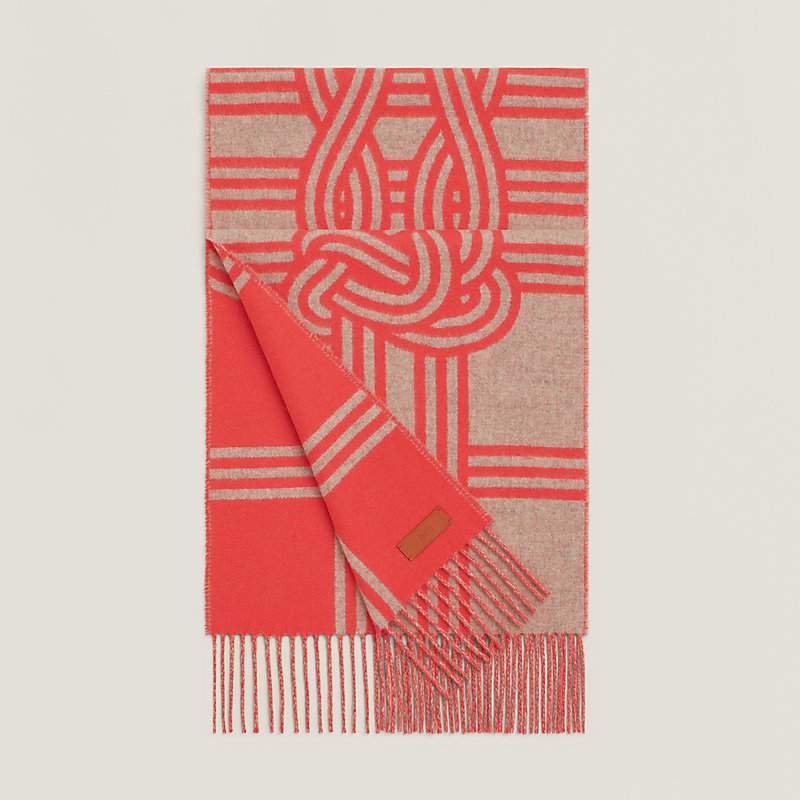 山羊绒围巾(100%山羊绒)。这款山羊绒围巾色彩缤纷、图形生动,灵感源自赛马骑师的骑装。