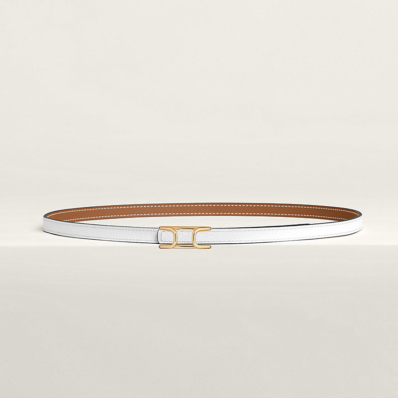 金属皮带扣。这款精致的皮带扣演绎轻盈造型,背后隐藏精妙的“H”字母图案。金属质感: 镀黄金 & Swift和Epsom小牛皮双面皮腰带。