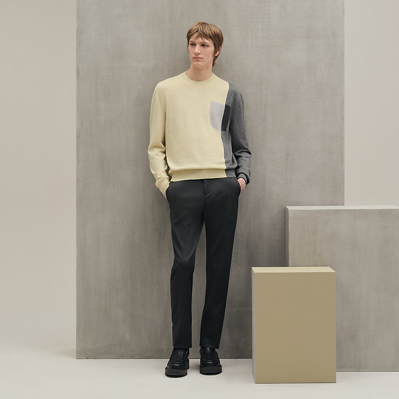 山羊绒与棉质长袖圆领针织衫,饰有“Poche ombree”细节(71%山羊绒,29%棉)。- 罗纹滚边衣领、袖口和针织衫底边- 撞色图案- 18支单股正常版型,请选择您的常规尺码。