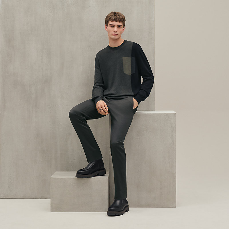 山羊绒与棉质长袖圆领针织衫,饰有“Poche ombree”细节(71%山羊绒,29%棉)。- 罗纹滚边衣领、袖口和针织衫底边- 撞色图案- 18支单股正常版型,请选择您的常规尺码。