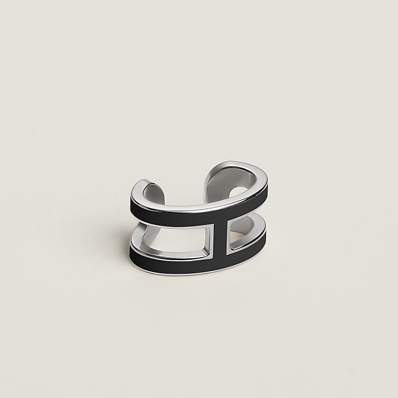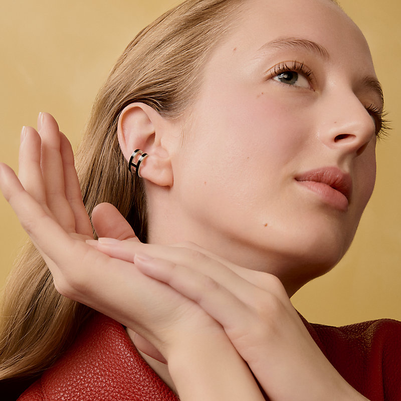 漆艺金属耳夹。标志性“Pop H”图案经重新演绎,为系列注入前卫新颖风格。通用开口设计简约便捷,有无耳洞均可轻松佩戴。耳夹单只出售。