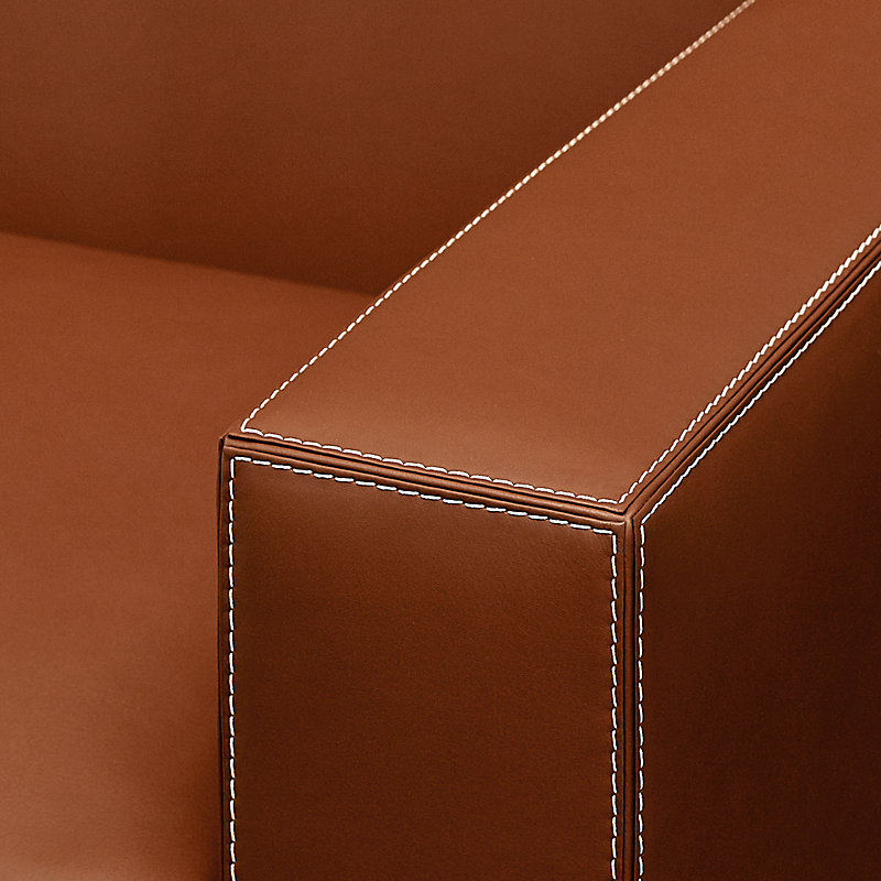 - 天然山毛榉木框架包覆光滑马鞍针法缝线H小公牛皮,饰有滚边细节