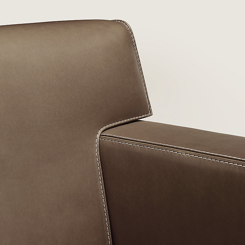 - 天然山毛榉木框架包覆光滑马鞍针法缝线H小公牛皮,饰有滚边细节