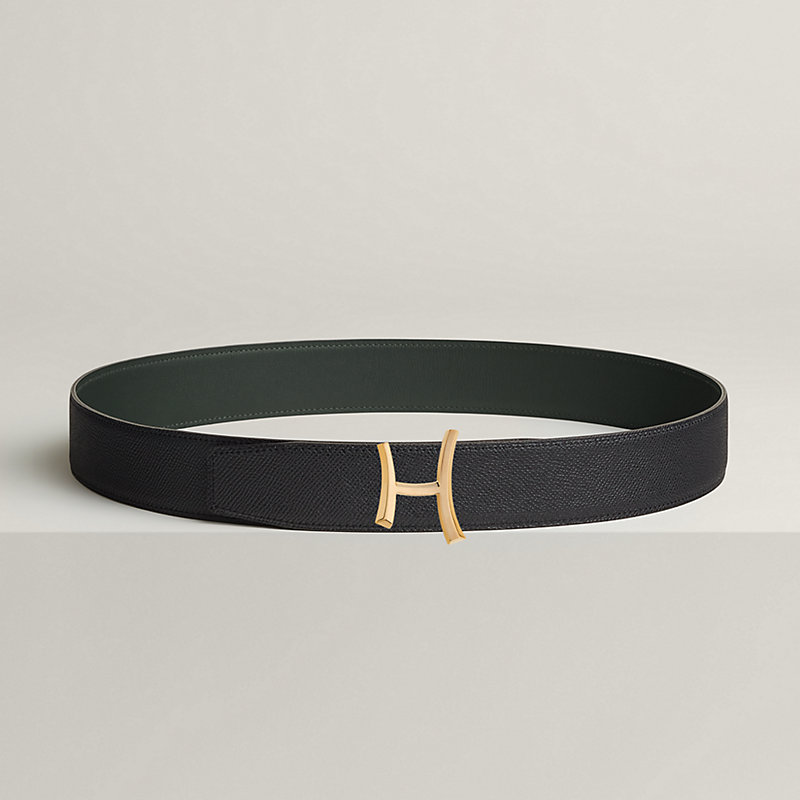 金属皮带扣。H Script皮带扣如同随性的手绘草图,以全新的不对称设计演绎品牌标志,尽显动感风格。 & Odyssee和Epsom小牛皮双面皮腰带。
