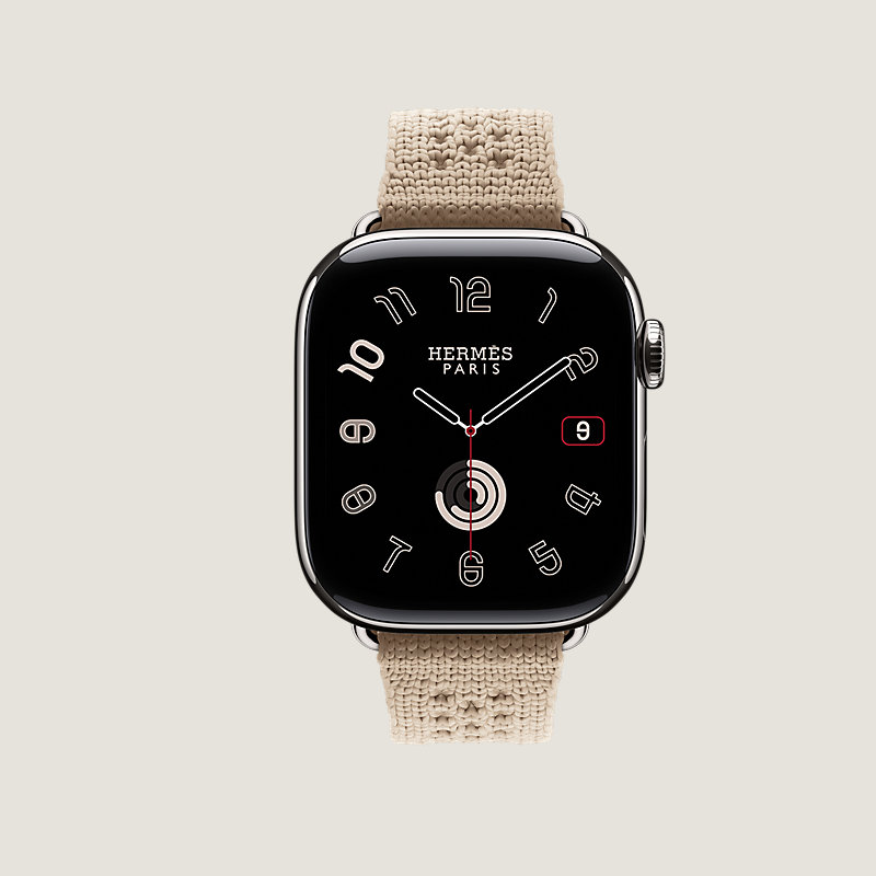 Apple Watch Hermès Series 11 42毫米钛金属表盘。 & 粘土色尼龙针织单圈表带。