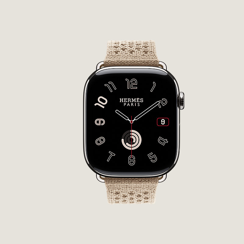 Apple Watch Hermès Series 11 46毫米钛金属表盘。 & 粘土色尼龙针织单圈表带。