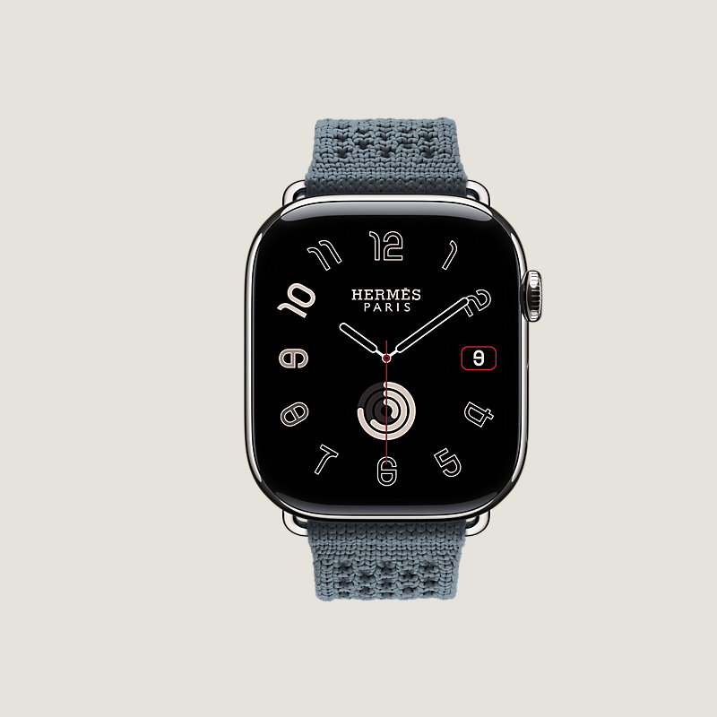 Apple Watch Hermès Series 11 46毫米钛金属表盘。 & 灰蓝色尼龙针织单圈表带。