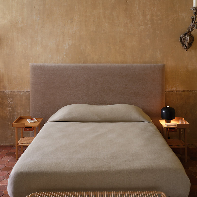 一切始于轻盈细密的蒙古牦牛绒。牦牛厚重的粗毛下,生长着柔软的细绒(khullu),在春天会自然脱落。这种毛绒纤维附着在西藏高原的灌木丛上,然后以手工采集。数百年来,尊贵稀有的牦牛绒仅作为紫禁城历朝皇帝的御用品。在尼泊尔,专家以巧手将其织造成丰盈柔软、颜色独特的毛毯。从绒线织边到平缝针法缝线,蜕变过程的每道步骤均以手工完成。织线先经过纺织,然后在传统有梭织机上进行编织,打造出双色人字纹编织图案。Swing系列包括床罩、毛毯和靠枕。