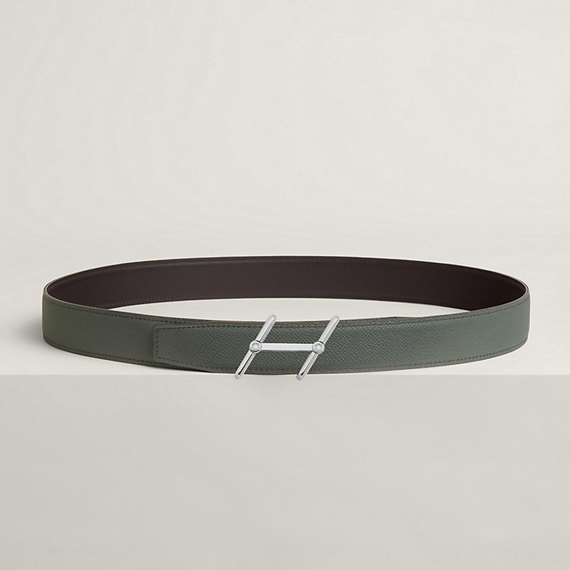 不锈钢皮带扣。这款“H”形皮带扣设计巧妙,适用于32毫米(1.3英寸)或38毫米(1.5英寸)皮带。 & Odyssee和Epsom小牛皮双面皮腰带。