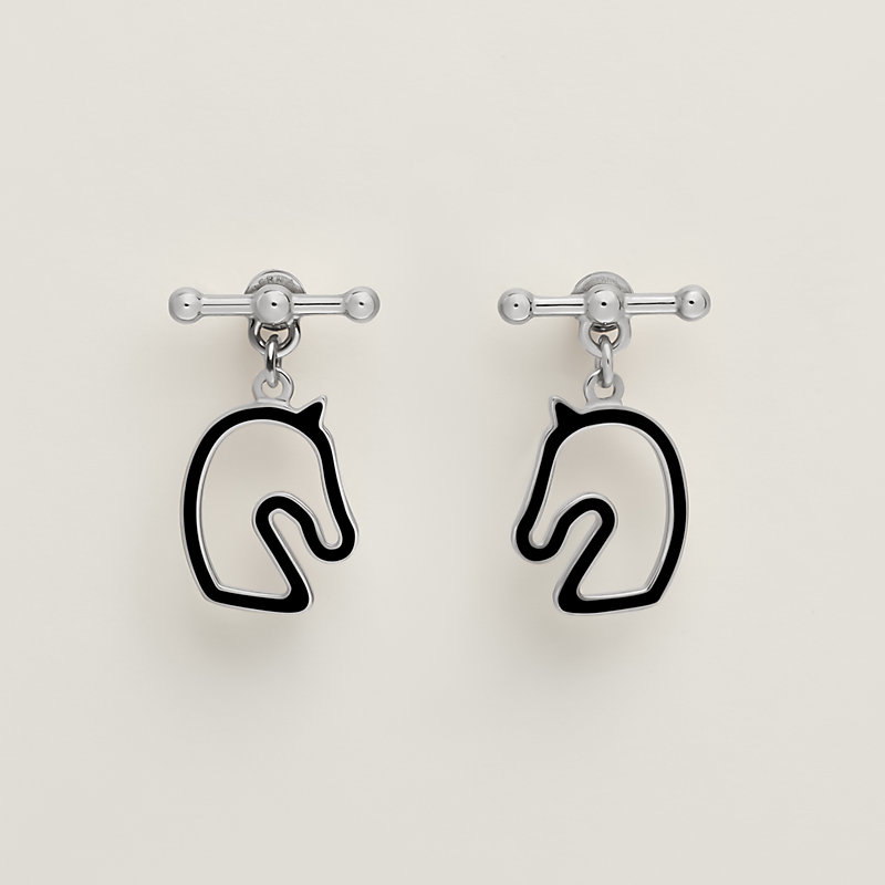 漆艺金属耳环。Tonnerre系列呈现流畅多彩的马首轮廓,向品牌马术世界致意。