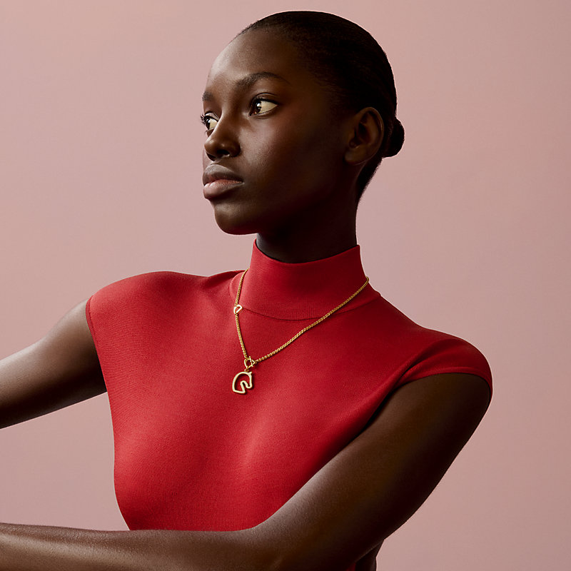 漆艺金属项链。Tonnerre系列呈现流畅多彩的马首轮廓,向品牌马术世界致意。