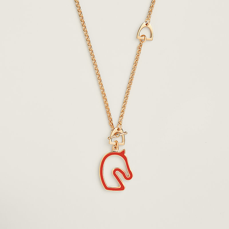 漆艺金属项链。Tonnerre系列呈现流畅多彩的马首轮廓,向品牌马术世界致意。