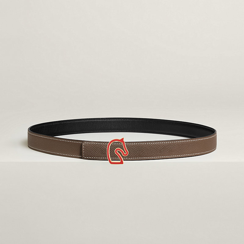 漆艺金属皮带扣。Tonnerre 24致意品牌的首位顾客:骏马。这款皮带扣以简约几何线条勾勒马首轮廓,点缀哑光漆面装饰。 & Swift和Epsom小牛皮双面皮腰带。