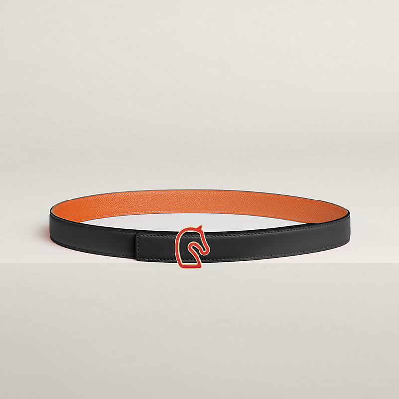漆艺金属皮带扣。Tonnerre 24致意品牌的首位顾客:骏马。这款皮带扣以简约几何线条勾勒马首轮廓,点缀哑光漆面装饰。 & Swift和Epsom小牛皮双面皮腰带。