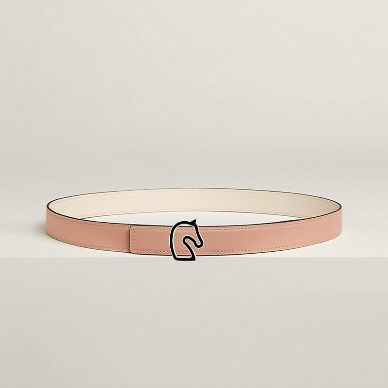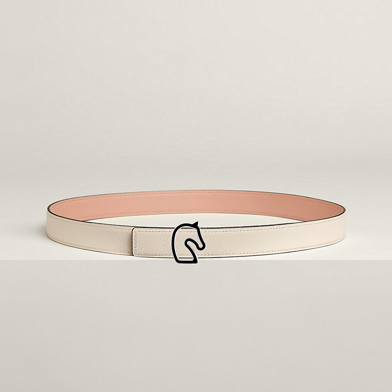 漆艺金属皮带扣。Tonnerre 24致意品牌的首位顾客:骏马。这款皮带扣以简约几何线条勾勒马首轮廓,点缀哑光漆面装饰。金属质感: 镀钯 & Swift和Epsom小牛皮双面皮腰带。