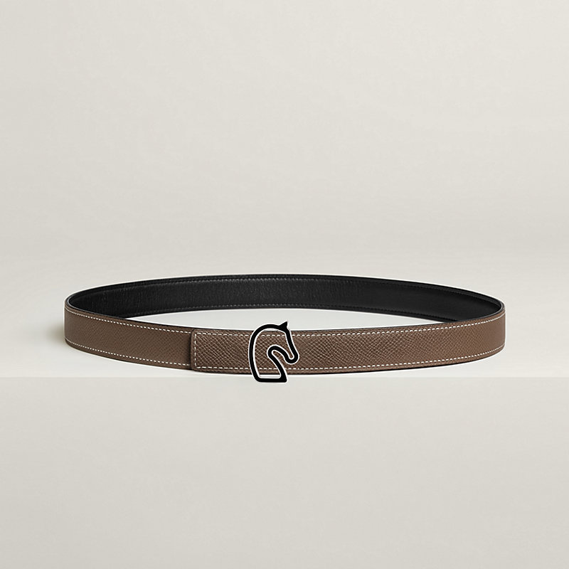 漆艺金属皮带扣。Tonnerre 24致意品牌的首位顾客:骏马。这款皮带扣以简约几何线条勾勒马首轮廓,点缀哑光漆面装饰。 & Swift和Epsom小牛皮双面皮腰带。