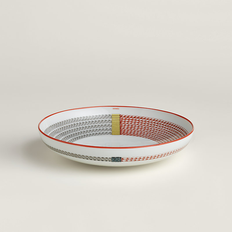 Tressages Equestres系列以别出心裁的方式演绎马术世界,细腻呈现鞍辔和绦边细节。别具一格的钢笔和水彩图案精致点缀由27件午餐、晚餐和茶/咖啡用具——其中包括10款深皿新作——组成的系列。